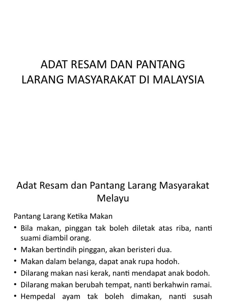 Pantang Larang Adat Resam Orang Melayu Pdf Document