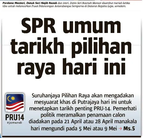 Pressreader Berita Harian 2018 04 10 Spr Umum Tarikh Pilihan Raya Hari Ini