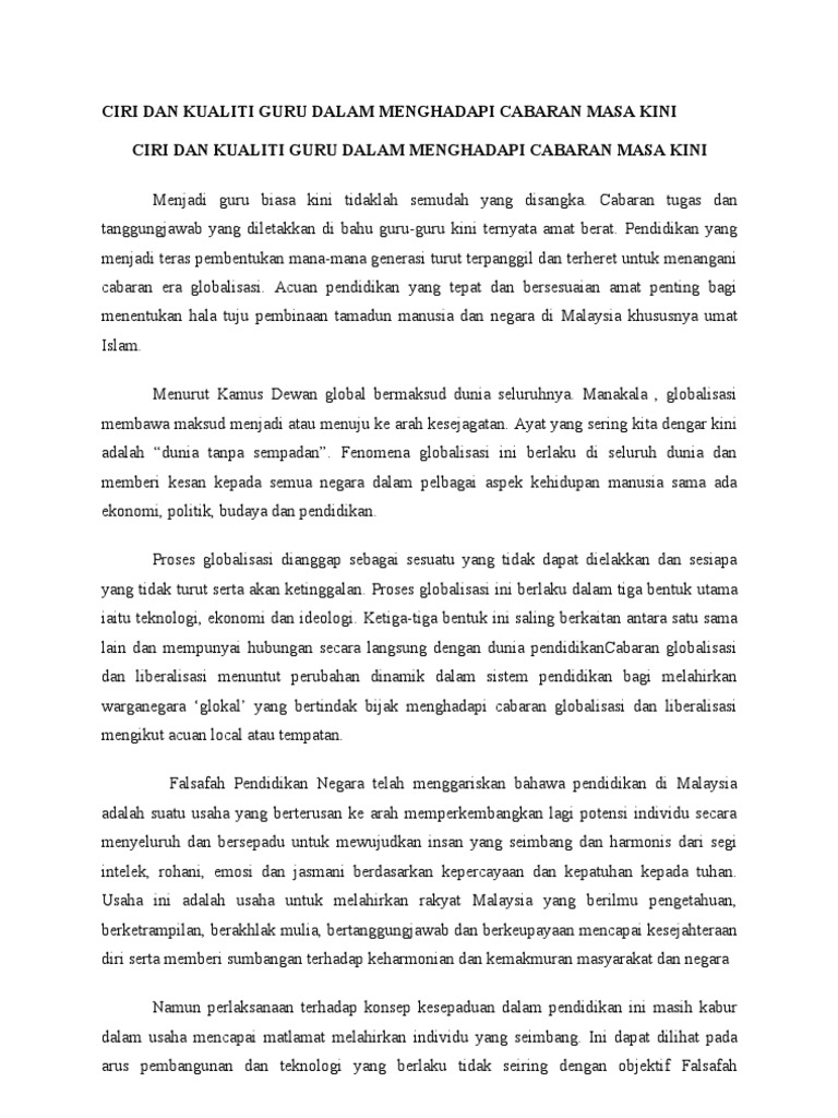 Ciri Dan Kualiti Guru Dalam Menghadapi Cabaran Masa Kini