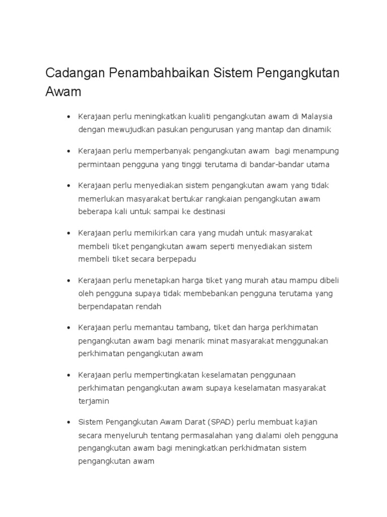 Cadangan Penambahbaikan Pengangkutan Awam Di Malaysia
