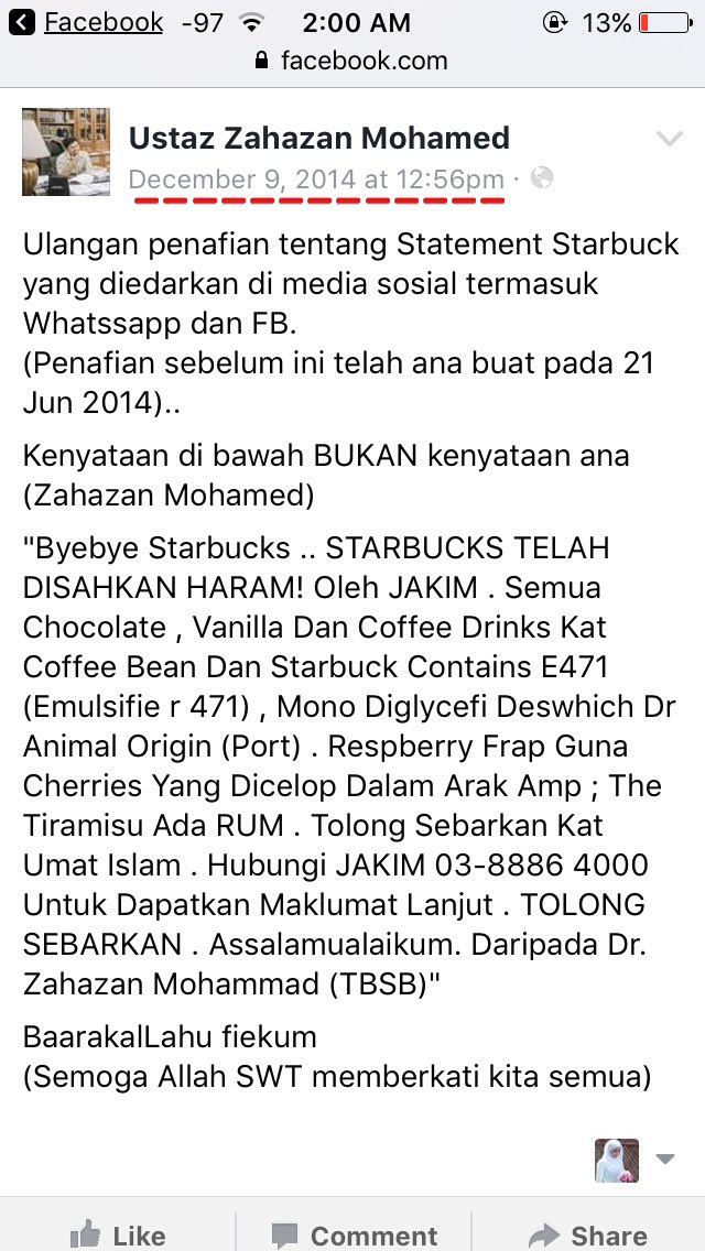 The tiramisu ada rum. This time the viral message was circulated on facebook implicating dr zahazan as the source of information again the same dude who got accused in 2014. Click to read more about nur dari gua by datuk dr. Semua chocolate vanilla dan coffee drinks kat coffee bean dan starbuck contains e471 emulsifier 471 mono di glycefideswhich dr animal origin pork.