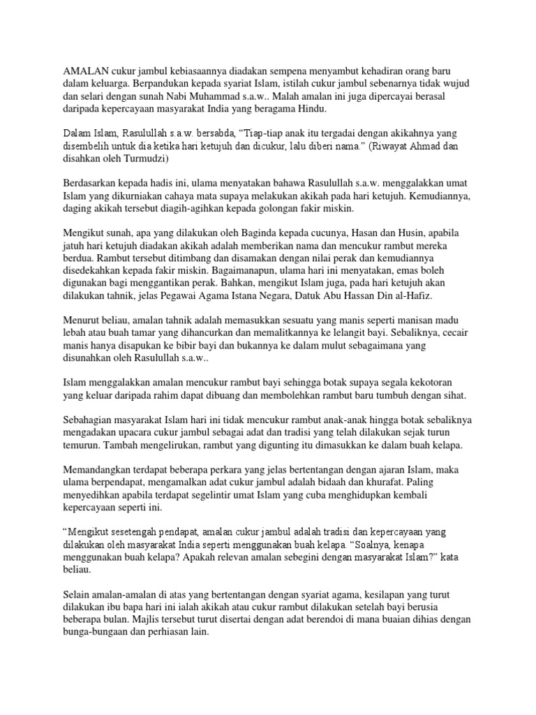 Amalan Cukur Jambul Kebiasaannya Diadakan Sempena Menyambut Kehadiran Orang Baru Dalam Keluarga