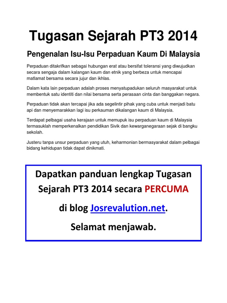Pengenalan Isu Perpaduan Kaum Tugasan Sejarah Pt3 2014