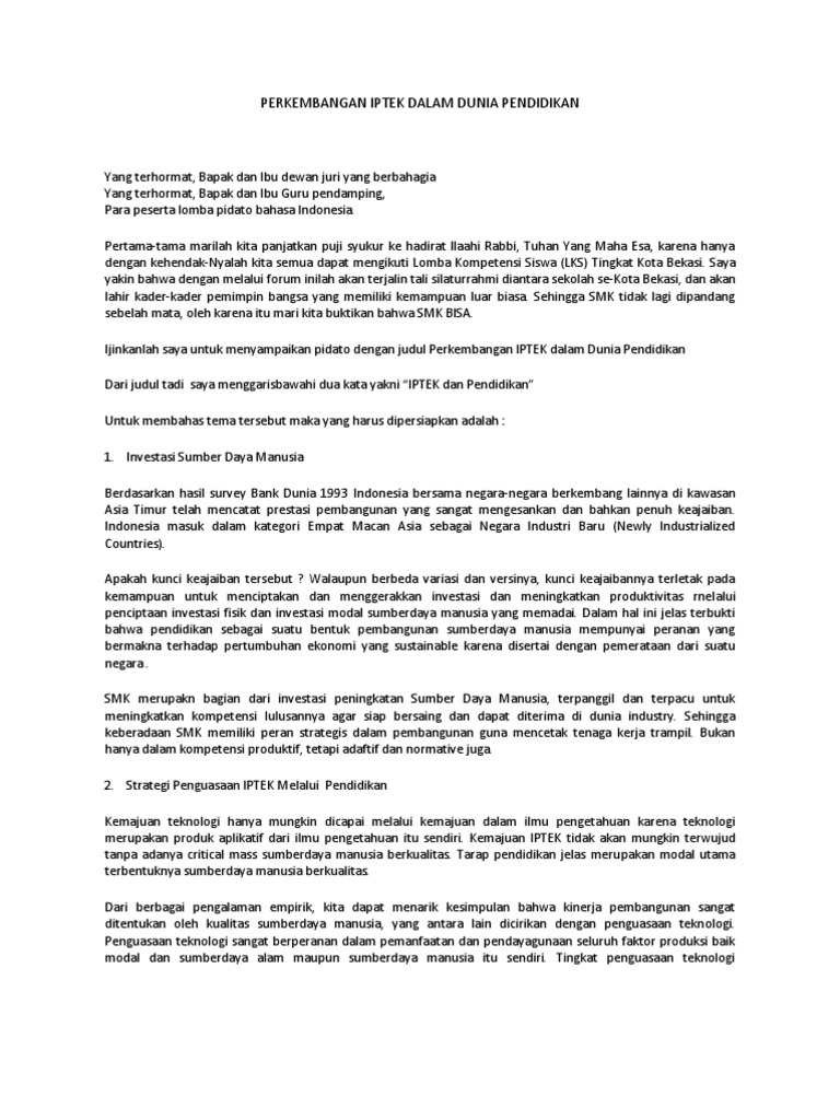 Perkembangan Iptek Dalam Dunia Pendidikan