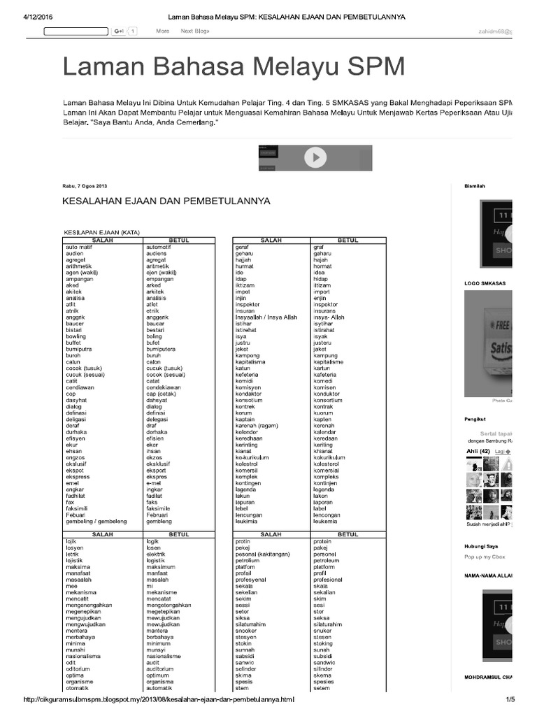 Laman Bahasa Melayu Spm Kesalahan Ejaan Dan Pembetulannya